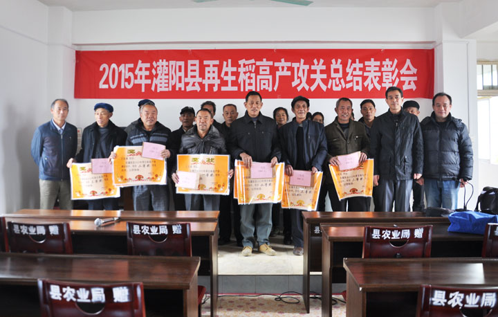 12月23日,灌阳县在黄关镇联德村召开再生稻高产攻关总结表彰会,对在2015年高产竞赛中获得高产的王良富等18位农户进行了表彰奖励,奖励现金总额达1万元左右。