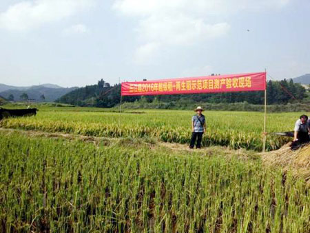 8月19日,三江县农业局组织专家组到大树村再生稻生产示范基地进行中稻测产。专家们通过对三块稻田各取3个点的测产方式,得到平均产量556公斤,比设计方案高5公斤。