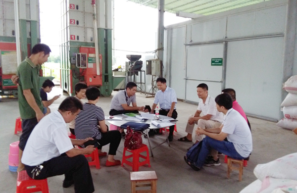 9月1日,自治区农业厅粮油处和农业技术推广总站领导专家一行4人,到宜州检查指导粮食生产及现代化水稻生产示范项目建设工作。