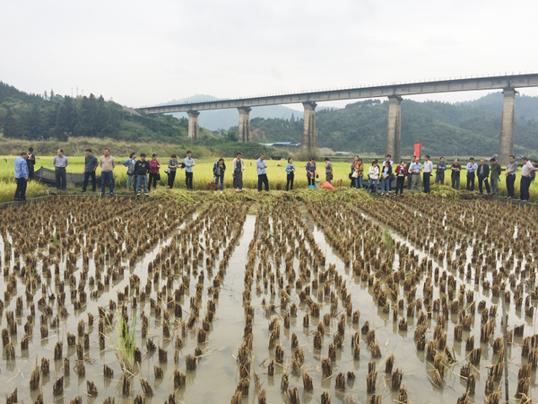 柳州市农业局召开2016年全市粮油产业发展暨秋冬种、再生稻、稻田综合种养现场培训会现场