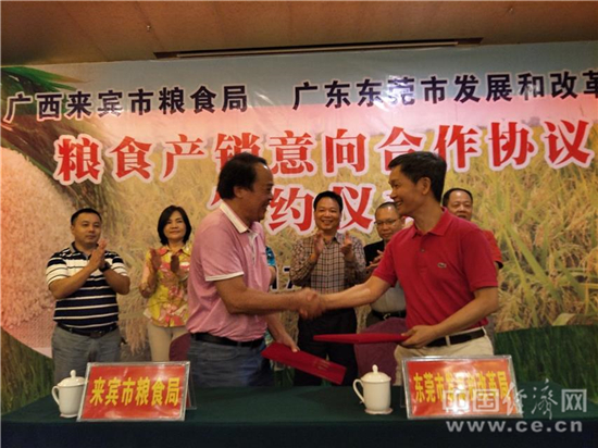 中国经济网来宾7月6日讯(记者 童政、通讯员 姚美华)“桂中粮仓”飘香广东!7月5日,广西来宾市粮食局与广东东莞市发改局签下25万吨的粮食产销合作协议,进一步巩固和发展了两市粮食产销合作关系。