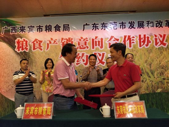 7月5日,广西来宾市粮食局与东莞市发改局签下25万吨的粮食产销合作协议,进一步巩固和发展两市粮食产销合作关系。