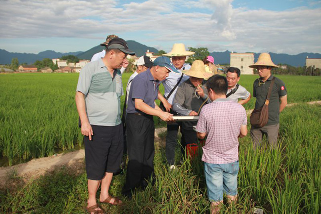 根据中韩水稻迁飞性害虫与病毒病监测合作项目合作协定,7月16日至18日,韩国农村振兴厅一行8位专家在农业部全国农技中心测报处陆明红、杨清坡的陪同下,到我市开展水稻病虫害发生情况田间调查。专家们分别到灵川县潭下镇潭下村、兴安县湘漓镇麦源村和中国农业科学院桂林有害生物防治野外科学观测试验站调查水稻“两迁”害虫田间发生动态,并考察水稻病虫综合防控情况;我市当地植保专家分别介绍了灵川县、兴安县的水稻“两迁”害虫发生与防控情况,双方交流了中韩“两迁”害虫发生动态和项目实施情况。自治区植保总站王华生副站长、桂林市农业局何祖任副局长、灵川县农业局蒋军局长等领导以及自治区、桂林市、灵川县、兴安县植保站的植保专家共同参加了田间害虫调查工作;灵川县黄可副县长、兴安县农业局吕瑞云局长分别在灵川县、兴安县会见中韩合作项目代表团成员。