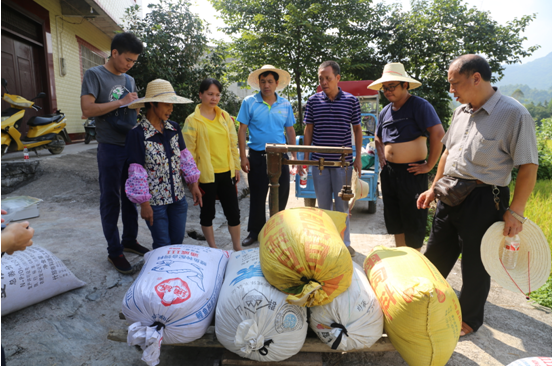 为及时推广该优质品种,增加农民收入,给消费者增添一个优质米的选择,2017年上半年,广西农科院水稻研究所及广西农乐种业有限公司联合河池市种子管理站、金城江区种子管理站在金城江区河池镇纳合村板盘屯展示示范105亩“桂育8号”。7月26日经专家组现场实割实测验收,平均亩产达到561.0公斤,超出原来的525公斤预期产量,完全可以和杂交水稻种媲美,值得大力推广。以下为现场产量验收场景图。