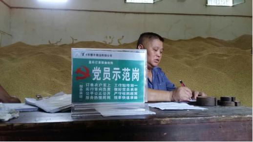 此外,结合当前正在开展的“两学一做”学习教育 “三比两争”活动,宜州区粮食局党总支部还积极指导穗丰粮油购销公司党支部在直补订单粮食收购工作中组织开展争创“党员示范岗”活动,该党支部尝试在同德粮所粮食收购点、大安粮食收购点先行设立“党员示范岗”,并立牌公开示范岗服务承诺事项:“订单农户至上,工作始终如一;实行首向负责,做好党员表率;公平公正公开,严守收购政策;服务热情周到,效率快速准确。”当日,在同德粮所粮食收购点,笔者看到党员示范岗的工作人员不畏酷暑,有序安排售粮群众停放车辆、稻谷过磅称重、认真书写复核单据、兑现粮款……党员示范岗的党员同志用自己的行动践行着自己在党员示范岗的承诺事项。宜州区粮食局通过设立“党员示范岗”,积极引导党员立足岗位、履职尽责,在直补订单粮食收购工作中发挥先锋模范作用。
