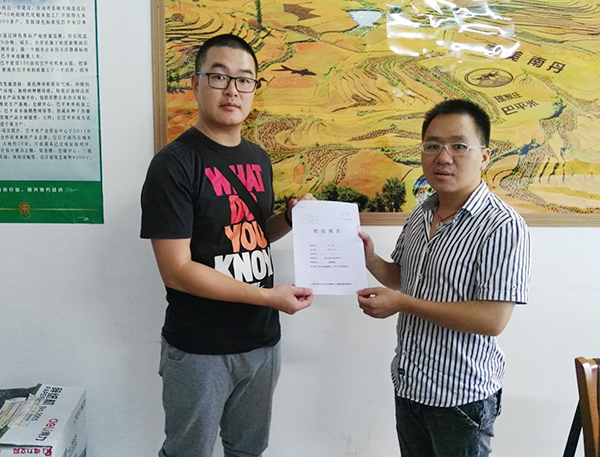 依照自治区农业厅的部署《自治区农业厅办公室关于开展2017年春季种子市场专项检查的通知》,南丹县种子站在依法依规做好种子备案的同时,做好种子市场监管工作。2017年2月28日河池市种子管理站韦康明站长与南丹种子管理站种子扦样员等6人,在南丹县范围开展农作物种子质量监督抽查工作,并扦取水稻杂交种子(中浙优1号)样品送广西壮族自治区农作物种子质量监督检验站进行种子水分、净度、发芽率、品种纯度检验。经检验,该批种子质量符合GB4404.1—2008《粮食作物种子 第一部分;禾谷类》标准,判为合格。南丹县种子管理站依据相关规定,于2017年8月29日将种子检验报告送达受检单位,并做好种子检验报告现场领取记录。
