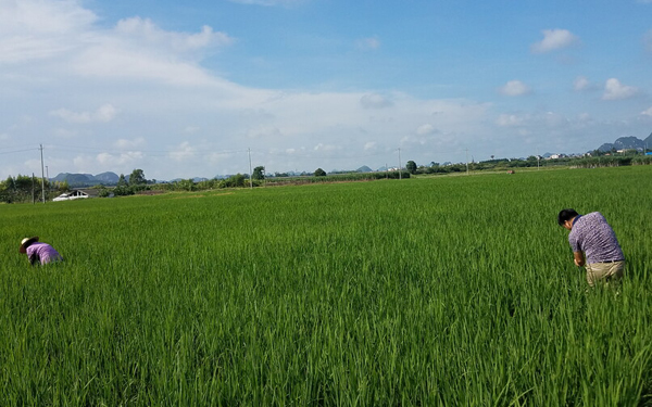 为了进一步推广测土配方施肥技术,提高肥料利用率,提高水稻产量, 2017年9月5日,扶绥县土肥站在渠黎镇渠黎村开展水稻化肥利用率田间试验,提取实时的田间试验数据,对试验小区的水稻进行测量株高和计算苗数进行田间记录,用以验证水稻肥料利用率参数,完善测土配方施肥技术指标体系,为广西测土配方施肥决策系统提供更多技术支持。图为工作人员在田间进行测量。