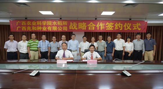 9月19日上午,广西农业科学院水稻所与广西兆和种业有限公司战略合作签约仪式在院学术交流中心举行。院党组书记、院长邓国富,飞尚集团董事长李非列出席签约仪式。