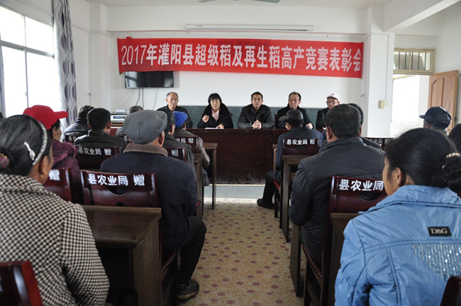 12月1日,广西桂林灌阳县在黄关镇联德村召开超级稻及再生稻高产竞赛表彰会,对2017年在超级稻及再生稻高产竞赛中获得高产的王良富等三十多位农户进行了表彰奖励,奖励现金3.18万元。王良富因实现超级稻最高亩产1048.33公斤喜获特等奖,奖励现金1万元。