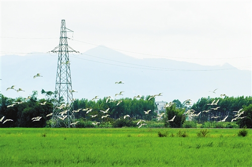春耕生产时节,宾阳县古辣香米核心示范区内,插秧机平稳而迅速地插下整齐的秧苗,成百上千只白鹭在绿意盎然的稻田上空盘旋。近年来,宾阳县坚持实施水稻生产绿色高产高效技术,不断开拓创新农业经营新模式,切实改善耕地生态环境,进一步提升稻米品质,全县农业生态环境得到改善,呈现出白鹭闹春耕这一和谐生动的现代田园劳作景象。
