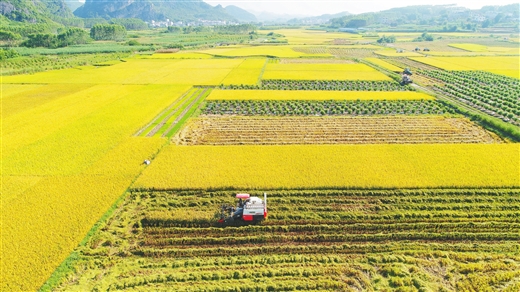 妙皇乡盘古村古朴屯生态田园,金灿灿的稻田里,稻穗弯弯,稻米飘香。百丈乡庭都村,村前一大片绿油油的砂糖橘果园里,青色的果实缀满枝头。