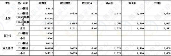 7月31日最低收购价稻谷(2013、2014)交易结果
