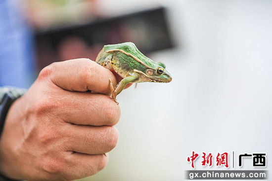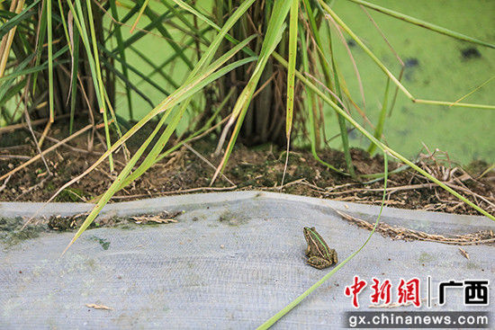 炎炎夏日,广西横县百合镇大炉村委大炉垌村50亩连片的“巨型稻+青蛙”生产基地内,青蛙的刮刮叫声十分引人关注。
