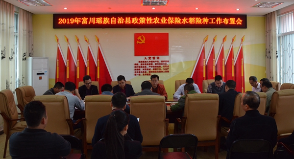 5月9日下午3点,富川瑶族自治县农业农村局组织各乡镇分管领导和中国人保财险富川支公司、北部湾保险富川支公司、太平洋保险富川支公司3家承包机构负责人及业务员等20多人召开了2019年富川瑶族自治县政策性农业保险水稻险种工作会议。