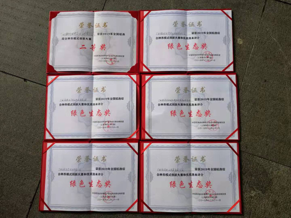自治区农业农村厅及水产技术推广站组织广西稻渔种养联盟五家企业参赛,均获稻渔种养模式“绿色生态奖”,分别是广西梧州田中农业有限责任公司、钦州市钦南区科农种植专业合作社、广西润爽生态农业科技有限公司、广西五关生态农业有限公司、广西庄润农业发展有限公司,其中广西梧州田中农业有限责任公司荣获全国稻渔综合种养模式创新大赛二等奖。