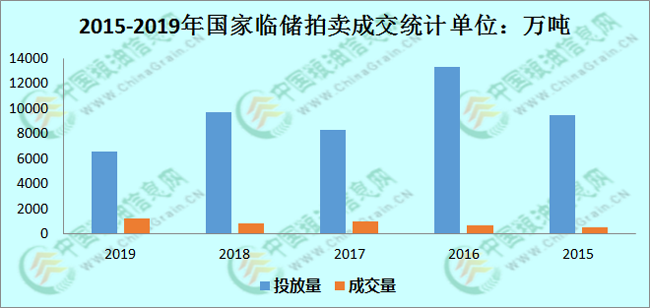 众所周知2019年国家临储稻谷拍卖已取得了不俗的成绩,据国家粮油信息中心统计数据显示,2019年国家政策性稻谷竞价销售累计成交1261.1万吨,同比增加405万吨。其中,早籼稻拍卖共计成交147.4万吨,同比增加75.6万吨;中晚籼稻拍卖共计成交488.2万吨,同比增加237.1万吨;近三年中成交总量是最高的一年,如下图所示。那么2020年稻谷去库存还会有这样高的成交量吗?是否会增加新的去库存政策?笔者认为国家临储底价降价是吸引米企的手段,也是加快去库存的催化剂。通过近几年国家去库存的总量来看,唯有降价是最简单、最直接的有效的方法,但造成的后果也是直接拉低了新稻上市后的价格,米企参与的积极性也被充分的调动了起来,特别是2019年持续保持着较高的成交率。但2020年若依然保持2019年销售底价,笔者认为米企大部分会望而却步,很难再有往期火爆成交现象出现。以东北为例,当前陈稻按照去年的出库价格来算,与南方产区新米仍有一定的价差,并且大米销路方面成为米企最头疼的问题,况且从粮库稻谷的质量来看,接下来主要拍卖主力在2015年产稻谷,此年限稻谷高质量的偏少,若拍卖底价不下调或新增去库存手段,恐难达到拍卖预期。