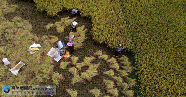 金秋十月,正值秋收大忙时节,广西壮族自治区百色市隆林各族自治县却遇到连续阴雨降温天气。近日天气转好,该县各族群众抢抓晴好天气,组织人力收割稻谷,力争颗粒归仓。截至目前,隆林全县近9万亩稻谷收割接近尾声。
