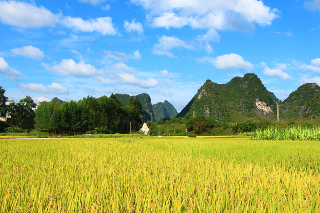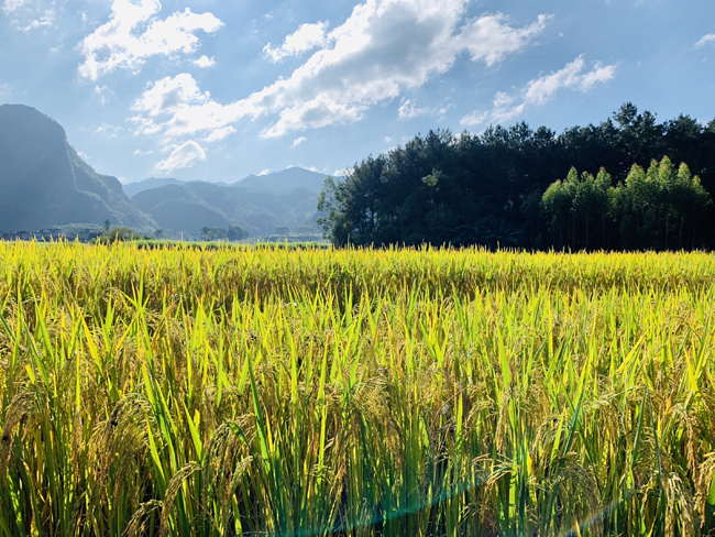 秋高气爽,天朗气清,广西壮族自治区百色市德保县足荣镇的稻谷迎来了丰收的时节。田野里,禾杆被稻穗压弯了腰,散发着淡淡的稻谷清香。风吹稻浪,仿佛一片金色的海洋,美不胜收。稻田里,往日不苟言笑的稻农们展露出质朴的笑容,一刀刀地收割攥在手里的稻谷,一摞摞地堆叠着喜悦的果实。