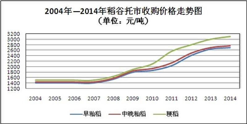 国家临时收储保护价格不断提高,但近三年涨幅已有缩减趋势,以下是近十年国家临储托市收购价格走势图。